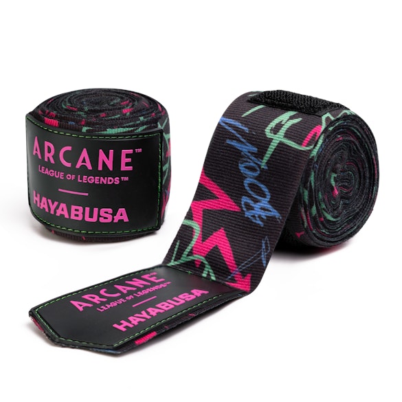 Choose your champion! The Arcane hand wrap collection combines three striking designs from the League of Legends universe with Hayabusa’s signature custom-blended fabric. Deliver hard-hitting justice with Vi's Enforcer Hand Wraps, unleash chaos with the rebellious Jinx Graffiti Hand Wraps, or channel your inner fighter with the fierce Vi’s Murk Wolves Wraps. Each pair is meticulously designed to capture the essence of these iconic characters from Arcane, making them the perfect gear for fighters and fans alike.